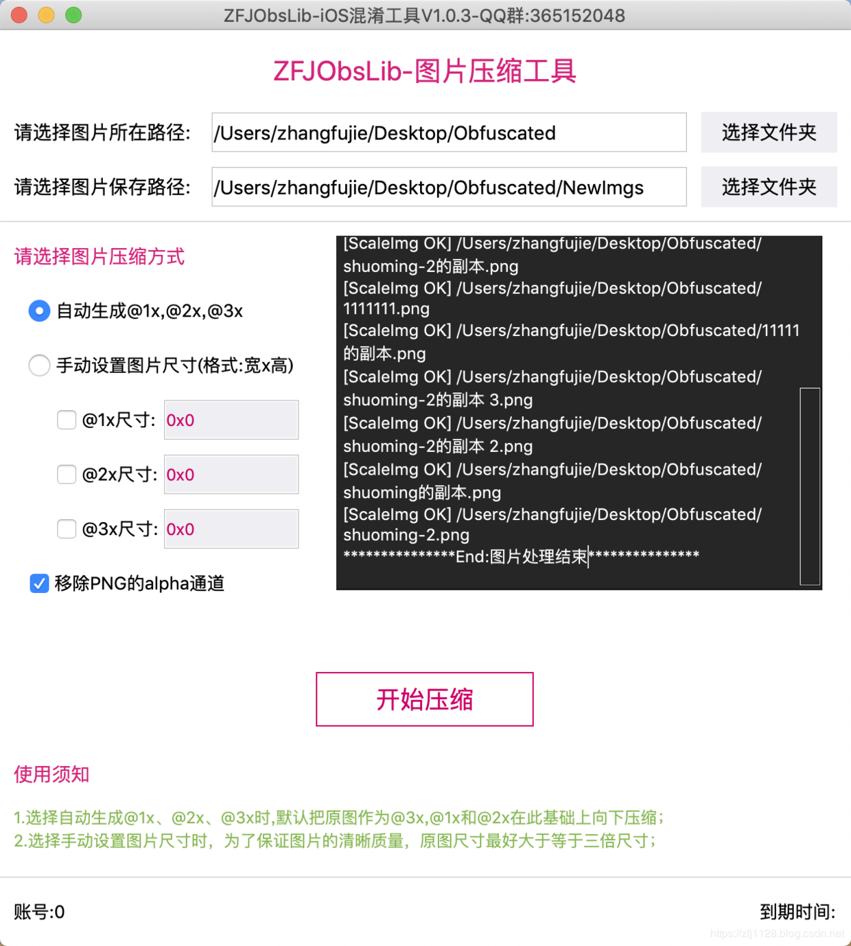 ZFJObsLib集成图片压缩工具,支持一键生成iOS开发三套图标,也支持自定义压缩尺寸,还可以移除Alpha通道,转成RGB图片模式;实现逻辑可参考:zfj1128.blog.csdn.net/article/det… 具体如下图: