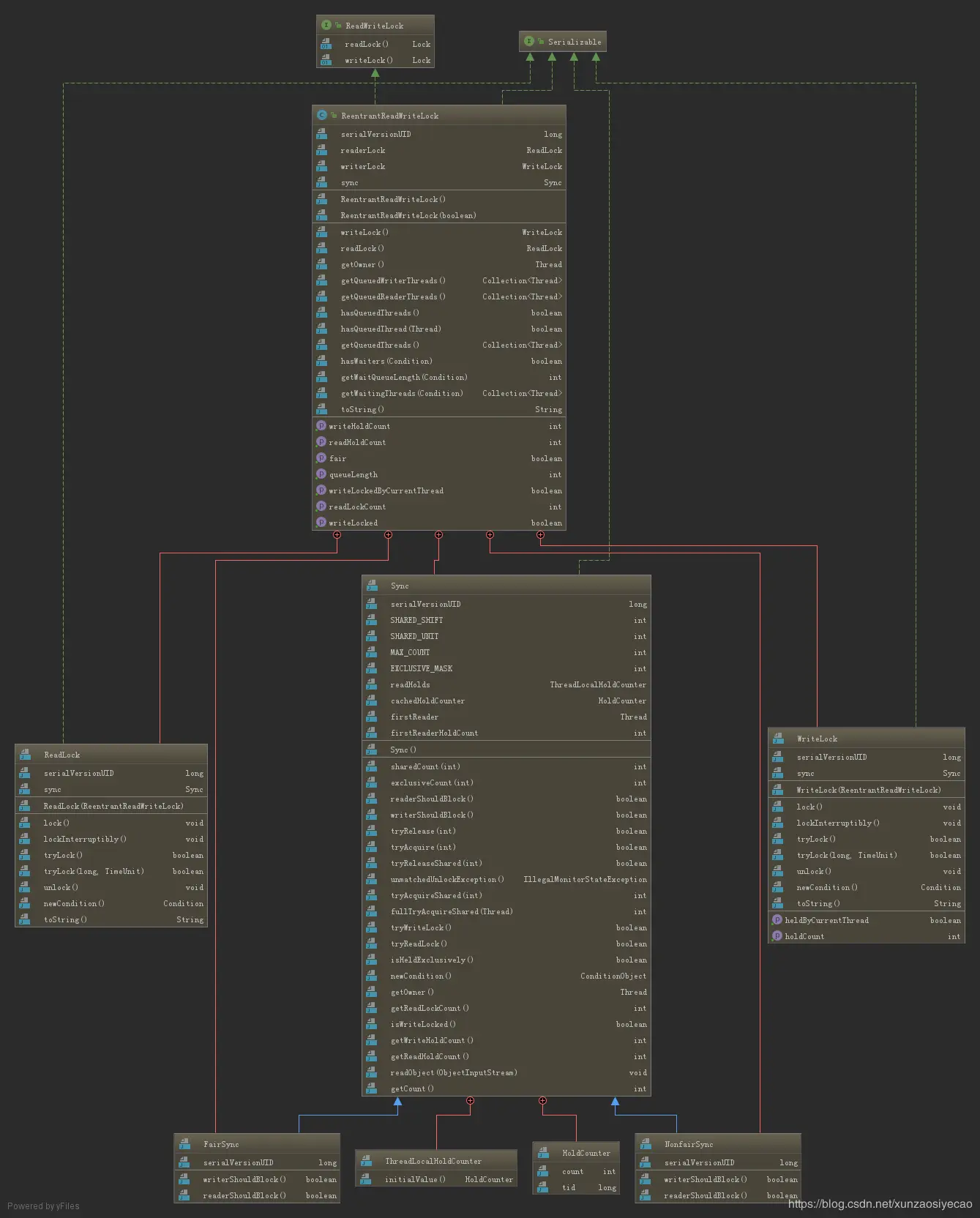 读完了以上三篇文章,先看一下ReentrantReadWriteLock的代码路径: