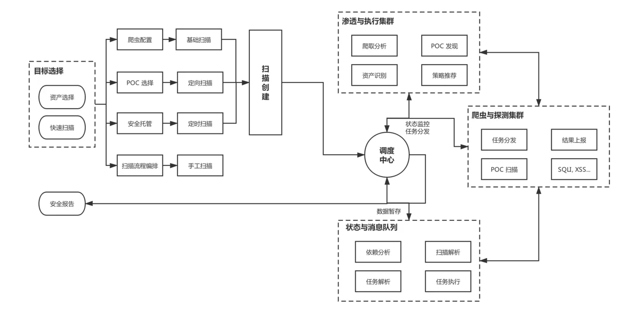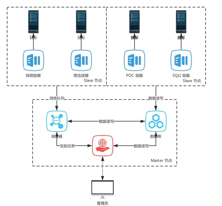 实际上,Chaos Scanner 中的 POC 节点与爬虫节点都遵循该调度方式,不过 POC 扫描节点主要是依赖于 RabbitMQ 进行任务分发: