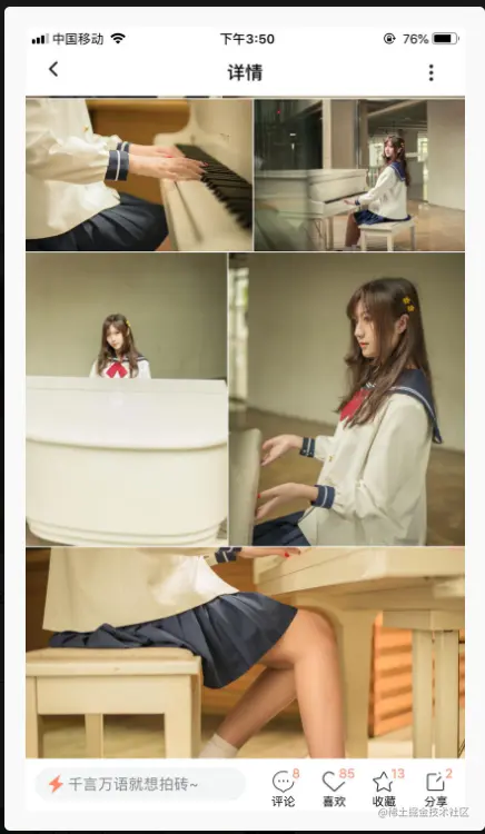 根据item类型,获取item的格数,头部和底部各占一行。正常图片的item根据计算好的图片宽度获取个数。 最终效果如下: