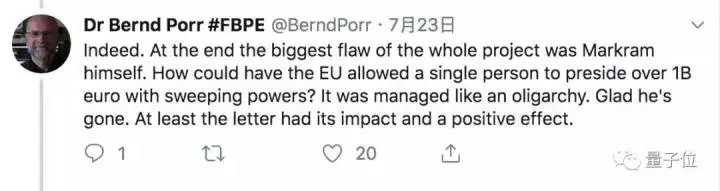 要我说,这项目最大的bug就是Markram本人,欧盟咋能把10亿欧元这么大一笔钱扔给一个人管呢?这就跟寡头一样。还好他走了。