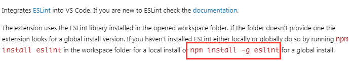进插件详情页,按说明,先全局安装eslint包