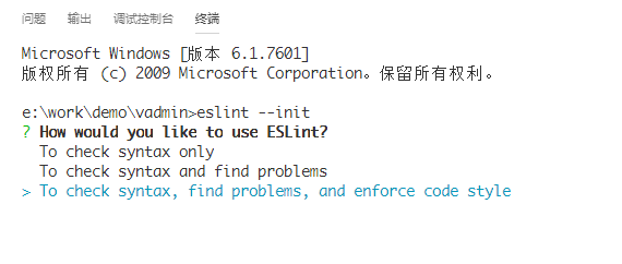 在VSCODE里面,CTRL+SHIFT+P, 复制 粘贴Create ESLint configuration 这行文字,然后回车