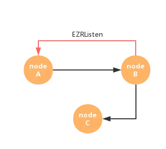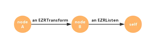 self --> an EZRListen --> nodeB --> an EZRTransform --> nodeA
