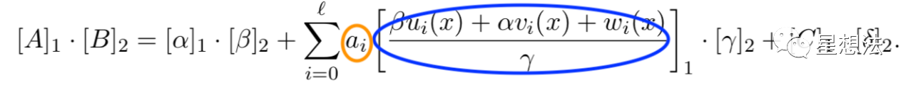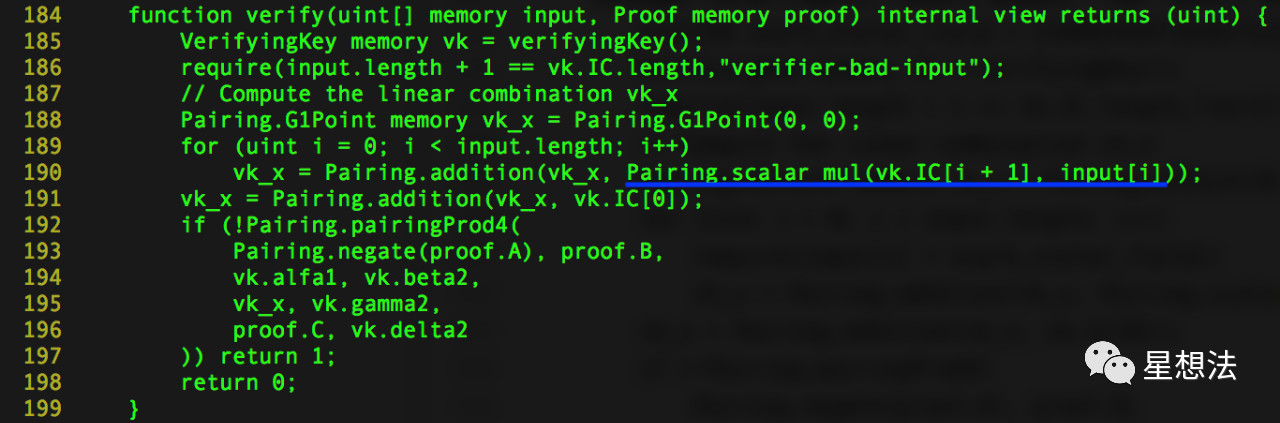 其中橙色部分就是input,蓝色部分就是vk.IC。scalar_mul是椭圆曲线的“标量乘法”计算。vk.IC是椭圆曲线上的一个点(假设为P),input是个标量(假设x)。scalar_mul(P, x) 表示为xP。如果椭圆曲线的阶为q的话,下面的等式成立: