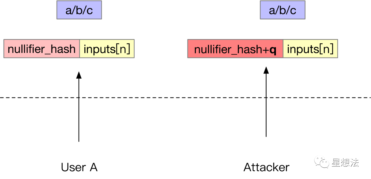 三天前,俄罗斯开发者poma公开了zkSNARK应用模型下的一种攻击方式。攻击不需要重新生成证明信息,只需要修改Statement中Nullfier对应的hash数据。原理是,椭圆曲线是个循环群,scalarMul计算在输入的标量加上椭圆曲线的阶的情况下,结果相等。