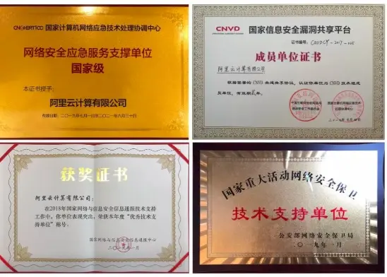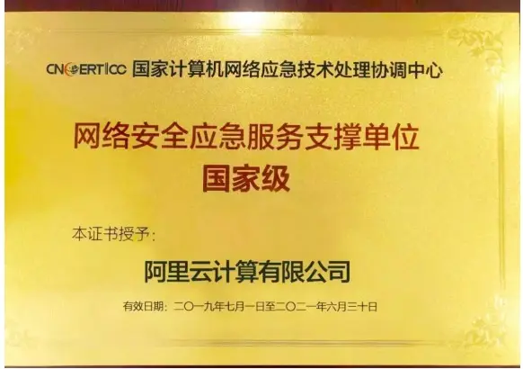 近日,阿里云当选由国家互联网应急中心CNCERT颁发的国家级网络安全应急服务支撑单位。