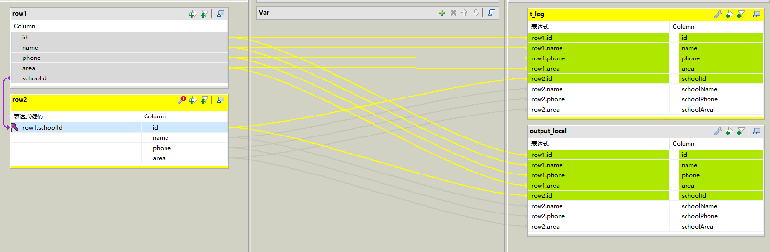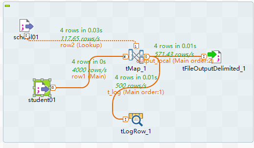 Talend使用 基本的数据组合 GaryZhang13067 2019-07-30 278 阅读1分钟 1、学生信息处理 首先需要两个元数据 student school 然后创建我们的job,tLogRow 输出学生信息到我们的控制台,tFilOutputDelimited输出学生信息。 使用tMap转换我们的源数据 结果