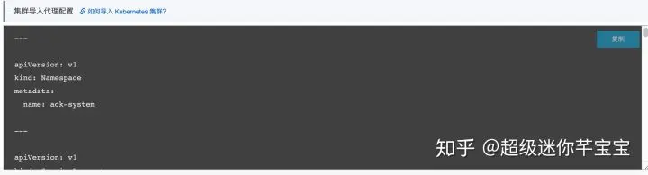 - 单击复制,将其中的yaml文件内容拷贝到agent.yaml文件中,并在目标集群中执行命令: