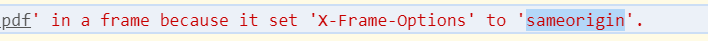 本该显示pdf文件的,却显示一片空白,并且上面还提示:“访问被拒绝”,后来打开控制台发现下图报错信息。然后发现原来是nginx 配置了X-Frame-Options: 'sameorigin';