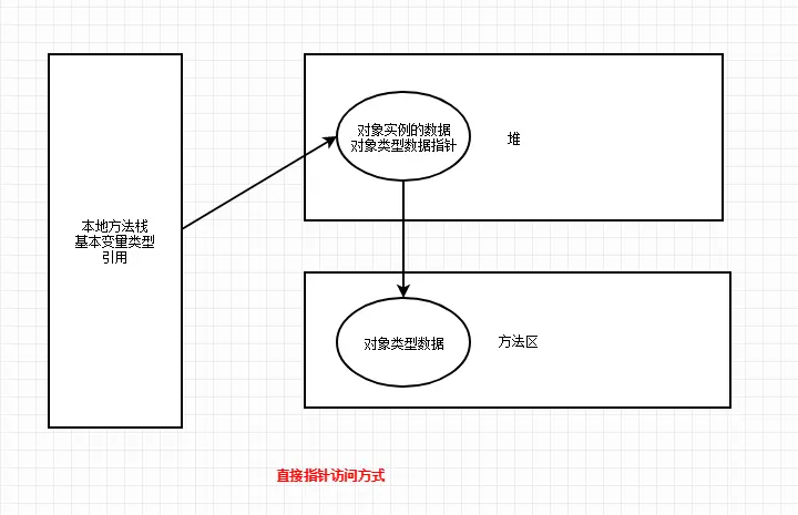 hotspot虚拟机使用的是直接指针访问,下面我讲一下大概的访问方式。还有一种句柄访问方式,二者各有优缺点,有兴趣的朋友可以自行去了解一下。