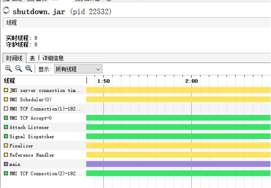 查看线程信息,发现注册的 ShutdownHook 线程没有启动,符合预期: