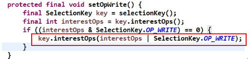 场景 B:如果一次没有把消息发送完成,此时 Netty 会监听写事件,触发 Selector 的下一次轮询并发送消息,代码如下: