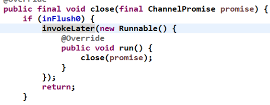 1.判断当前该链路是否有消息正在发送,如果有则将关闭操作封装成 Task 放到 eventLoop 中稍后再执行: