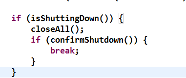 在 confirmShutdown 方法中,夹杂了一些对已经废弃的 shutdown()方法的处理,例如: