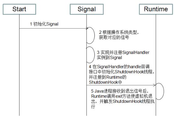第四步,在接收到信号回调的 handle 接口中,初始化 JDK 的 ShutdownHook 线程,并将其注册到 Runtime 中,示例代码如下:
