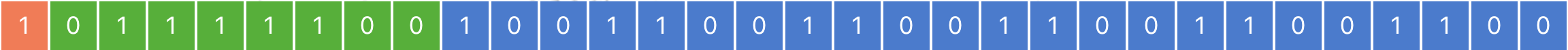 | -0.2 | 1 | 10011001100110011001100 | -3 + 127 = 124 = 01111100 |