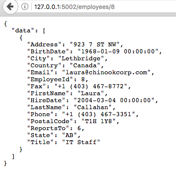 - http://127.0.0.1:5002/employees/8 返回 employees id 为 8 的用户