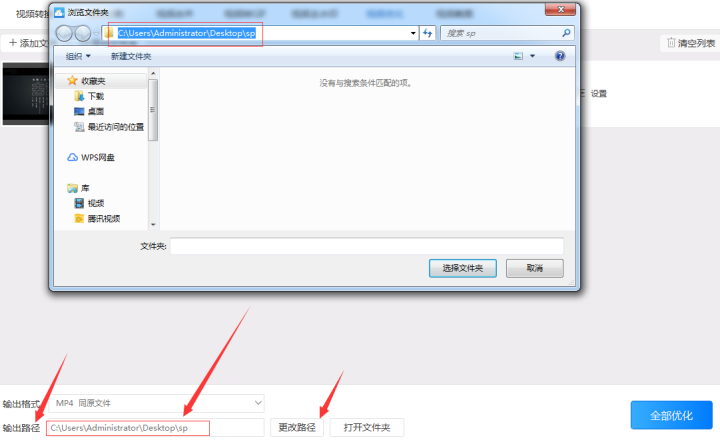 4、预设优化后的视频存储到电脑的“输出路径”。预设输出路径时可以在输出路径输入框中直接写入路径也可以直接把路径复制到输入框中,或者点击输入框右边的“更改路径”按钮选择需要输出到电脑的路径。