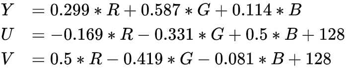 其中 Y 表示明亮度(Luminance、Luma),也就是灰阶值。