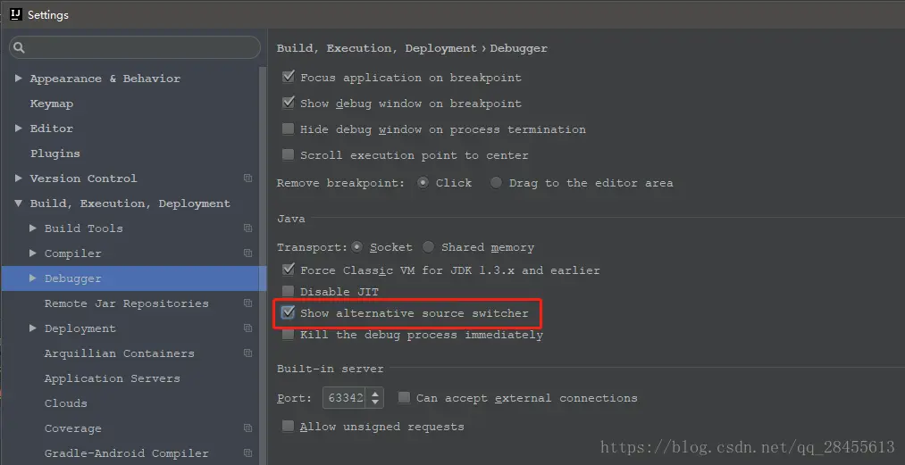 Ctrl+Alt+S进入Settings,选择Debugger->show alternative source switcher 勾选,开启显示替代源选择器