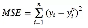 例如黑色的线是我们模型拟合的直线,蓝色的点是实际我们样本的y值,我们通过y值减去我们直线上预测的值,之间的差就是我们预测的值与样本之间的距离。通过平方来抹去正负之间的影响。然后我们将所有的距离相加并除以平均值,得到平均的一个距离。这就是我们的模型和样本真实值的误差。