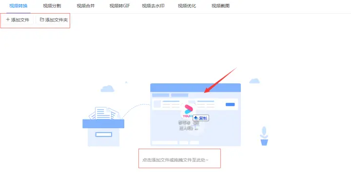 2、确认选择了“视频转换”功能后把优酷下载的kux视频添加到软件,添加的时候可以点击软件左上方的“添加文件”/“添加文件夹”按钮或者直接以拖拽的方式把优酷的kux视频添加到软件中。