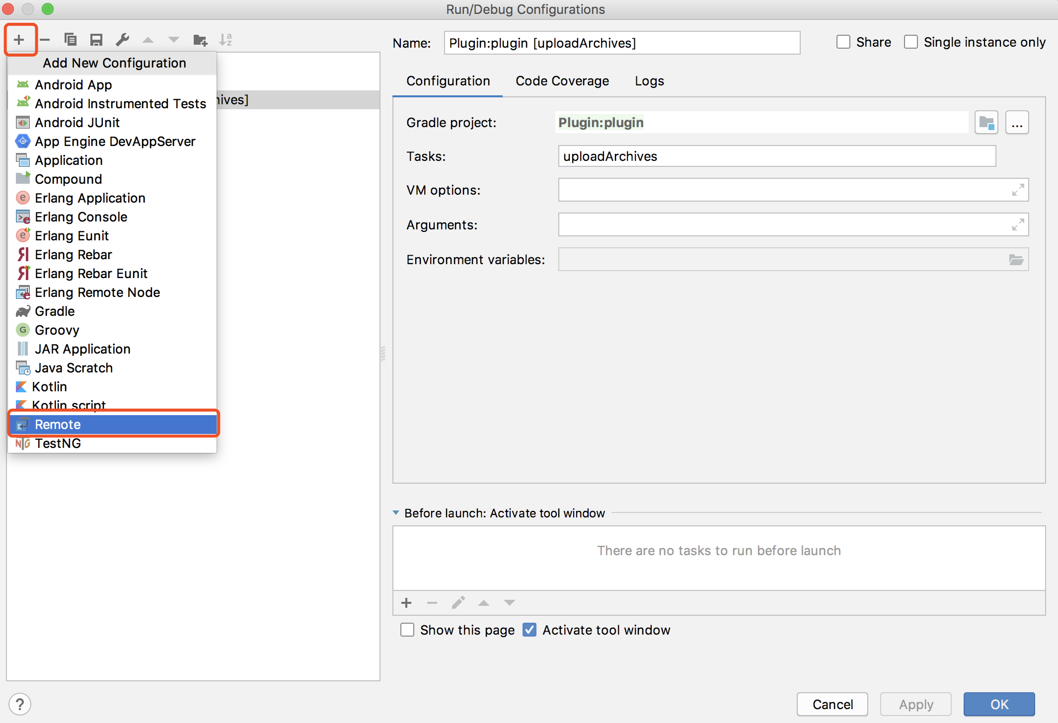 1、插件工程添加远程调试任务