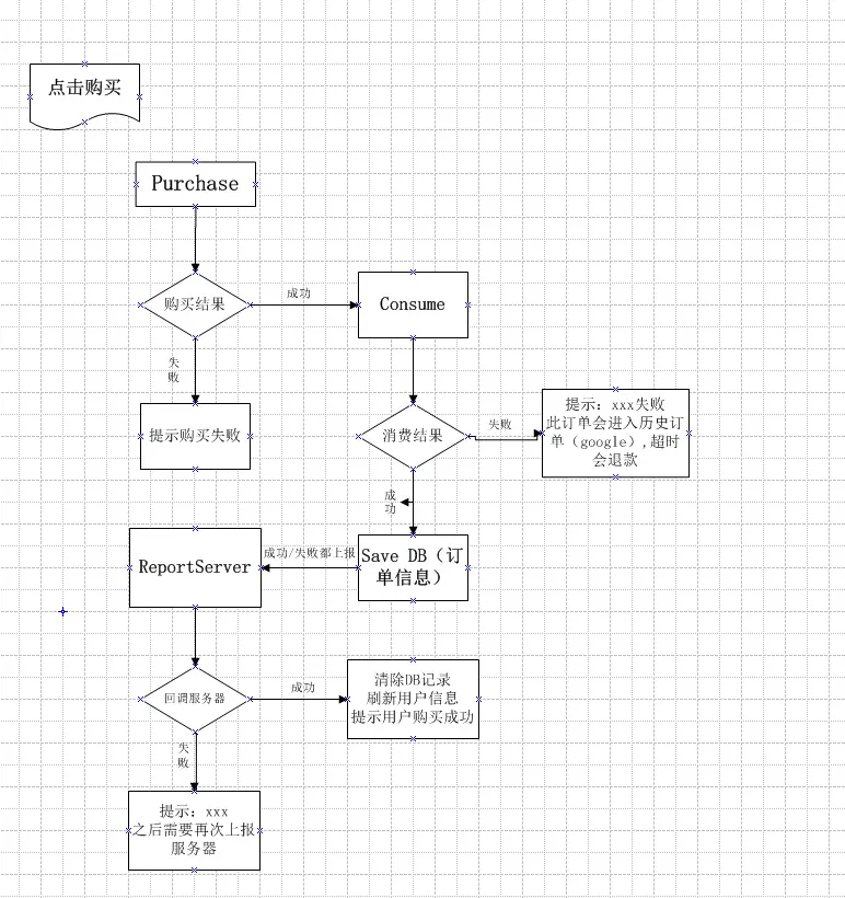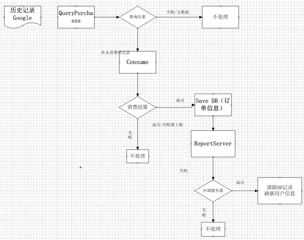 注:前面mBillingClient. d的操作都建立在连接成功的情况下。但是这几步存在异常的情况,比如说支付成功了,但是没有消费成功(consumeAsync),消费成功了,但是上报服务器失败了,所以需要一些机制保证最后一定能上报给服务器。
