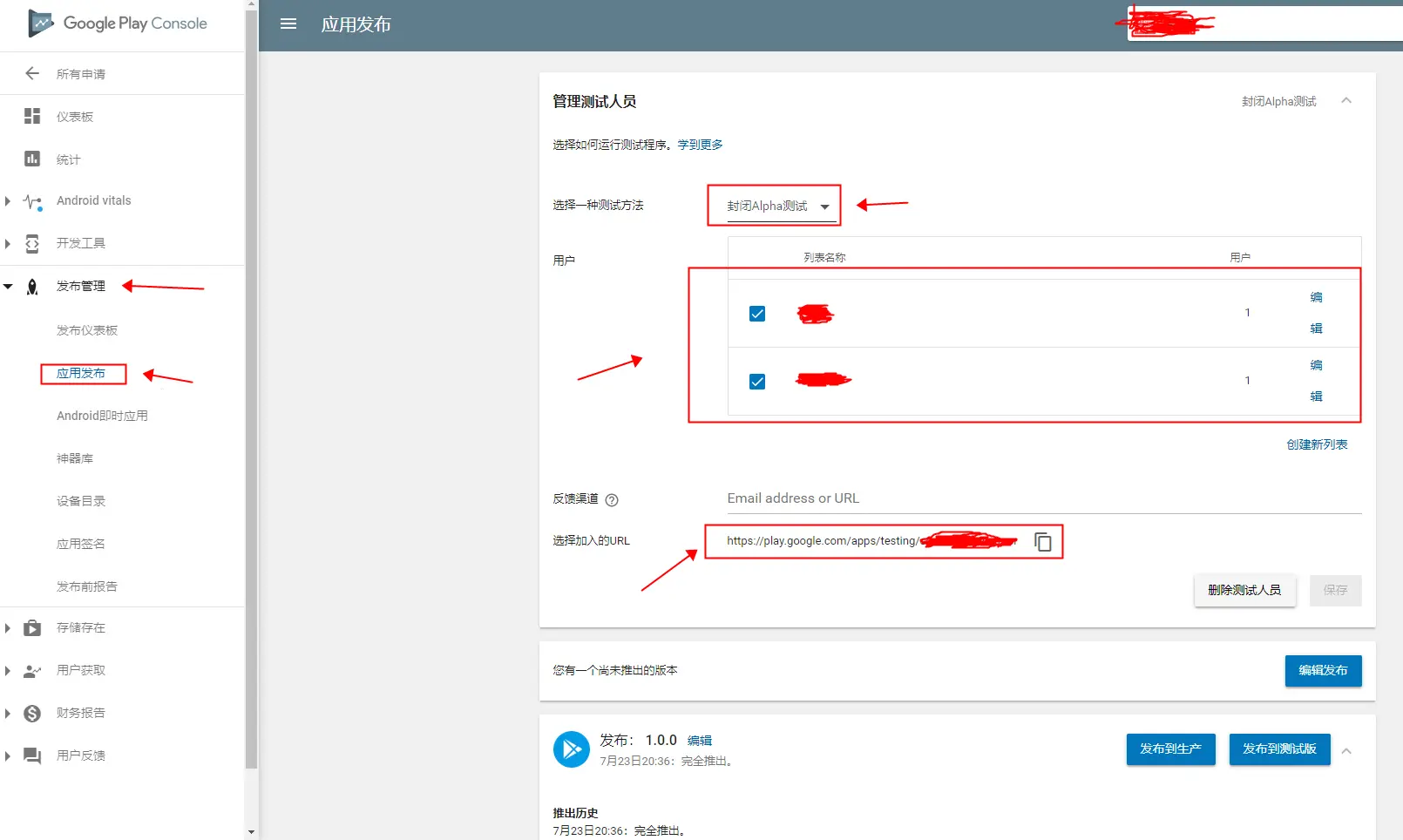 ## 4.添加测试人员,等应用审核通过之后,会得到一个地址,把地址发给对方,让对方点击同意加入测试即可,测试地址;
