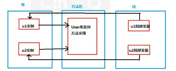 我们创建一个新的对象,User:那么User类的一些信息(类信息、静态信息都存在于方法区中)