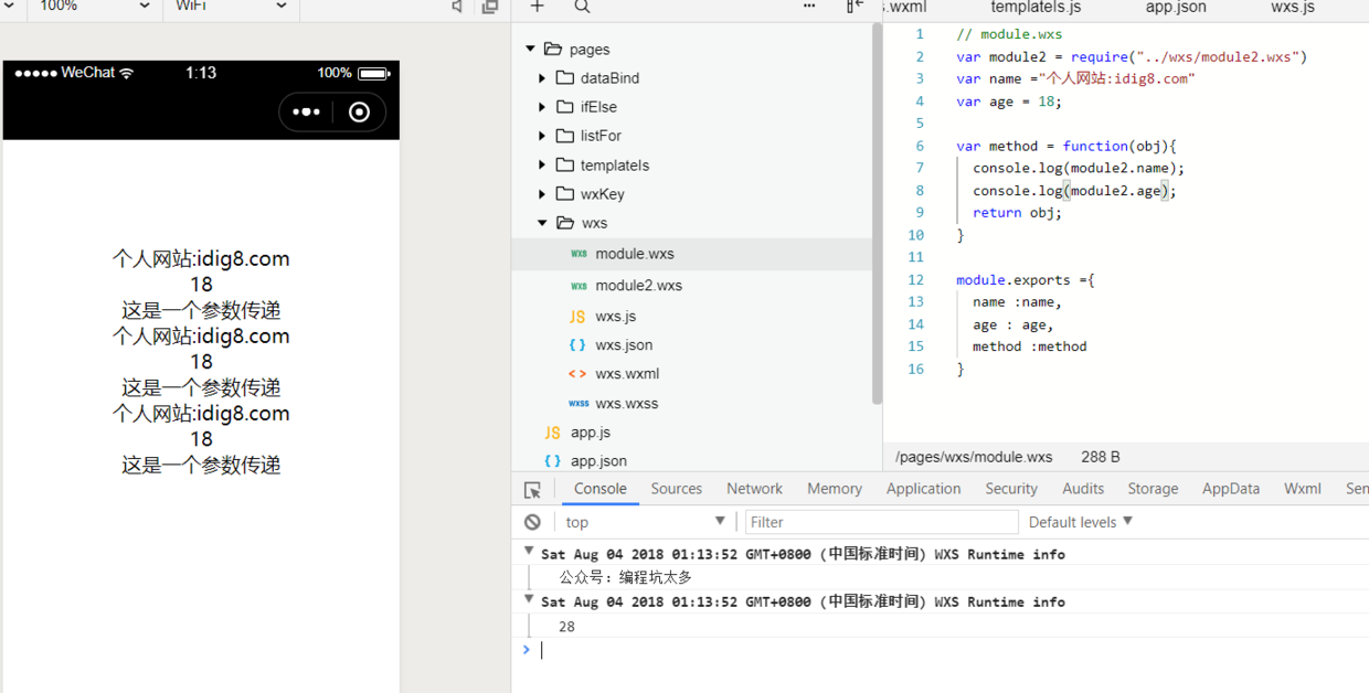 * 如果一个 wxs 模块在定义之后,一直没有被引用,则该模块不会被解析与运行。