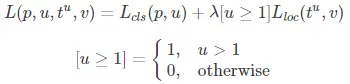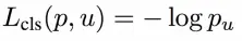 首先看分类任务,设 u 为真实的类别标签,u属于(0,1,...K),背景类别标签为0,为Softmax层对应的K+1个输出,为K+1个类别的预测概率。最终,分类任务的损失函数为: