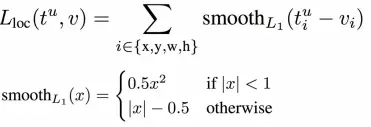 约定u=0为背景分类,那么u>=1函数表示背景候选区域即负样本不参与回归损失,不需要对候选区域进行回归操作; λ控制分类损失和回归损失的平衡,文中所有实验λ=1.