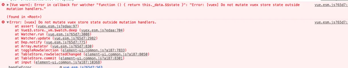 关于 vuex 报错 Do not mutate vuex store state outside mutation handlers.