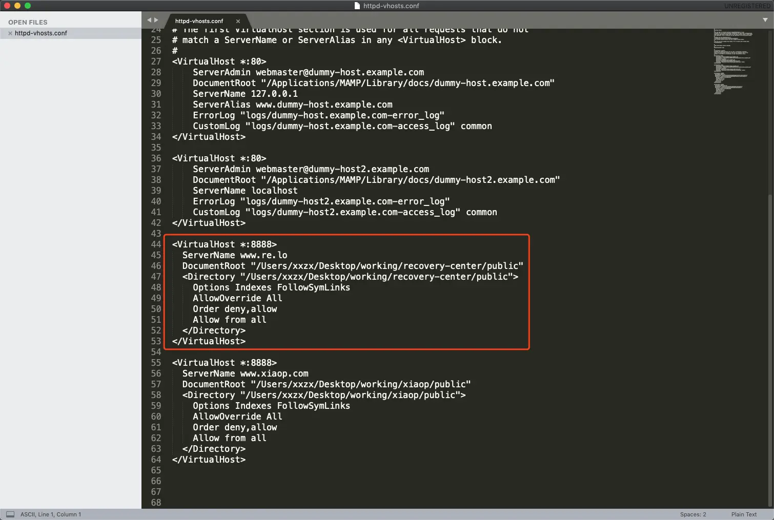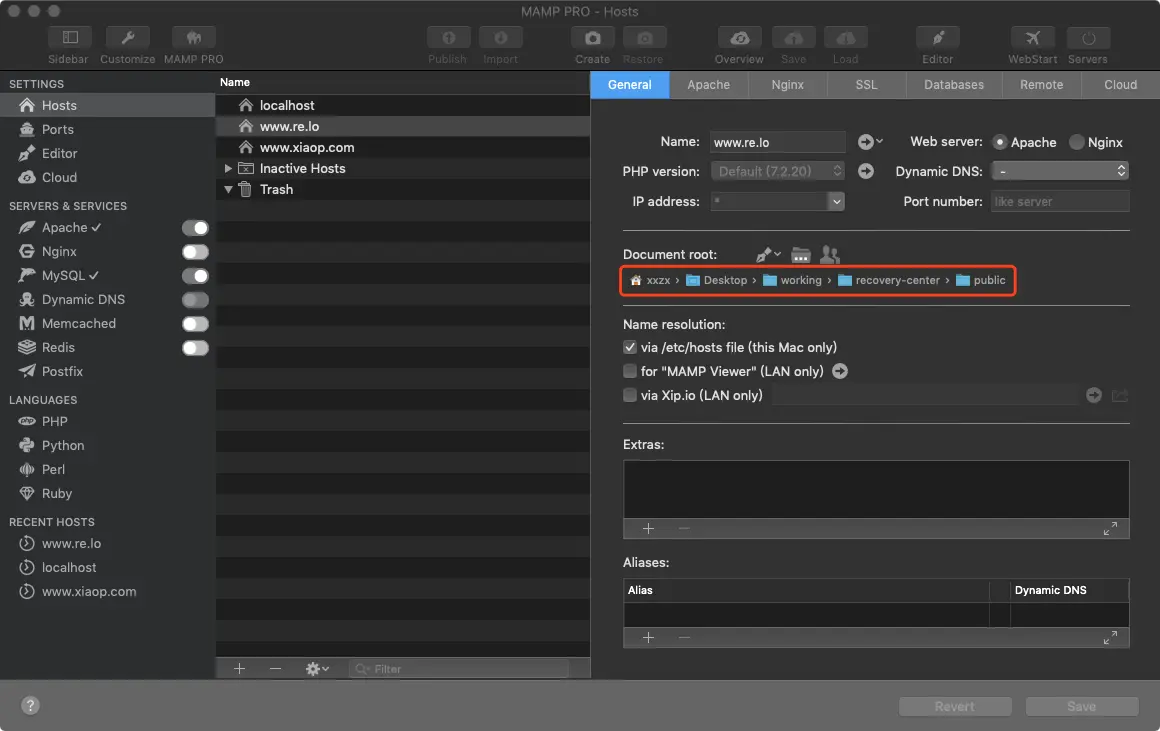 DocumentRoot "/Users/xxzx/Desktop/working/recovery-center/public"