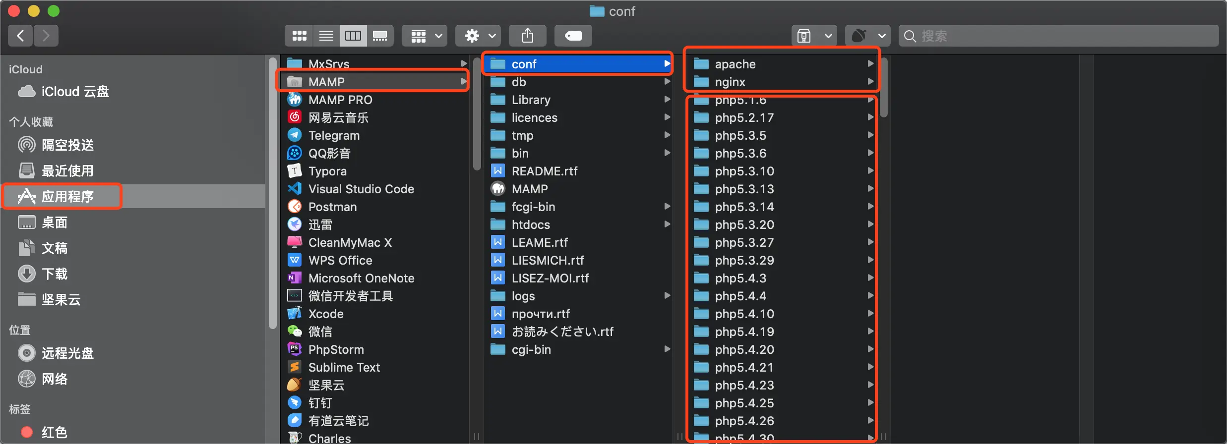 根据上图的路径我们可以看到. 如果需要配置 apache 和 ngix 是在上面的两个文件夹中. 如果需要配置 PHP 相关的内容. 则在我们的下面 PHP 各个版本中.