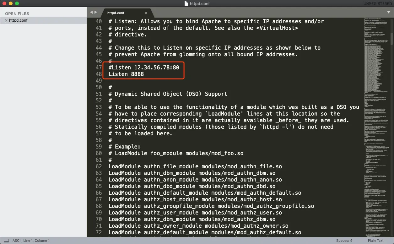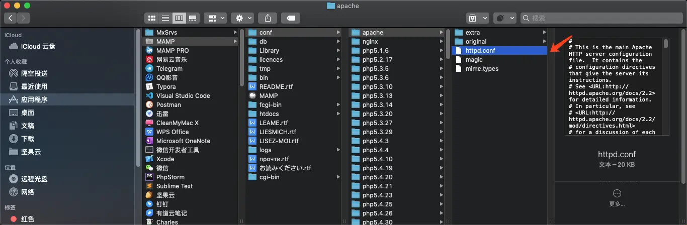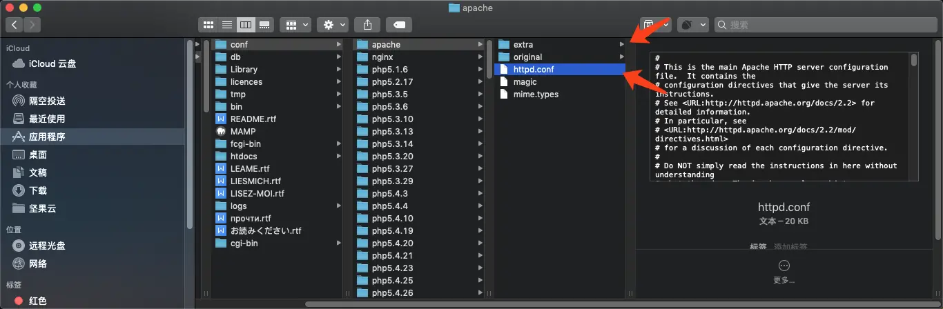 找到我们 apache 的配置文件