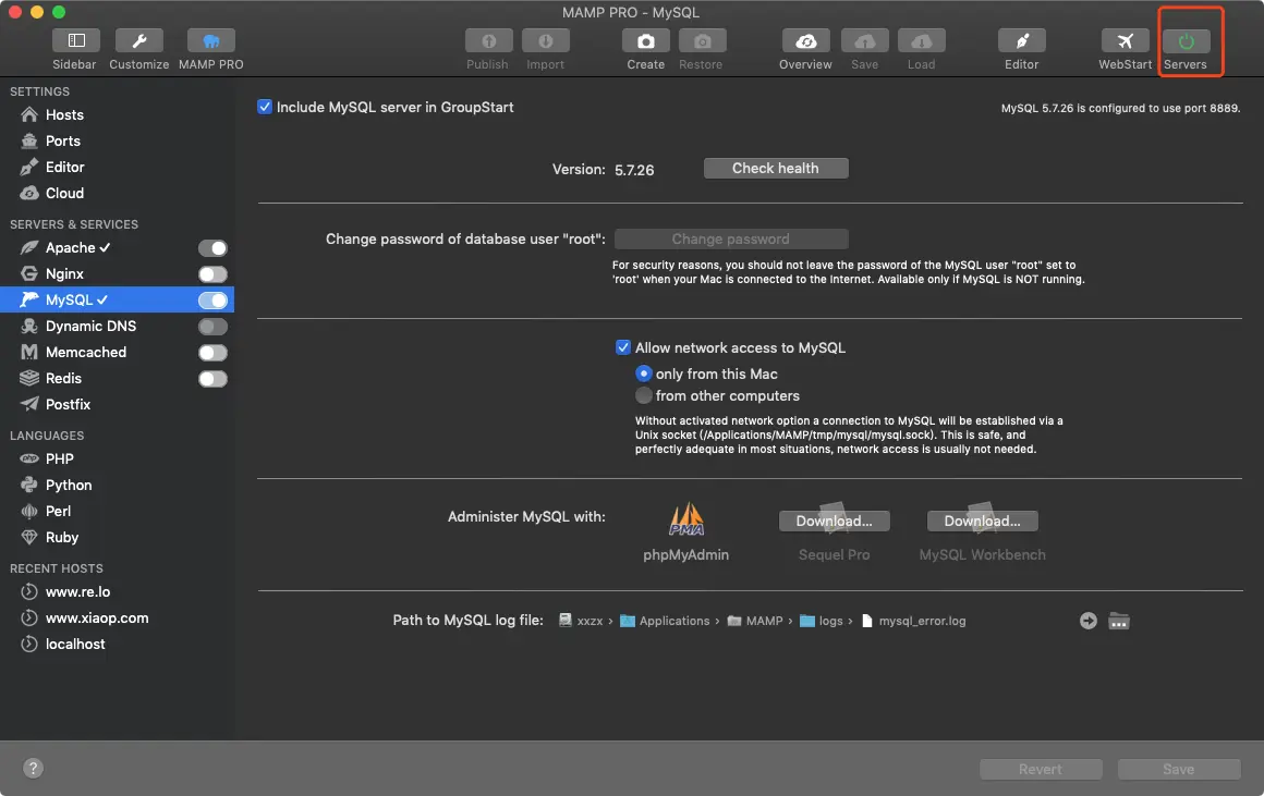 我这边使用的是 MAMP PRO