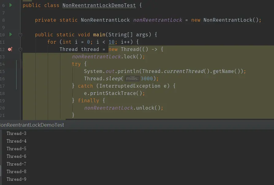 private static NonReentrantLock nonReentrantLock = new NonReentrantLock();