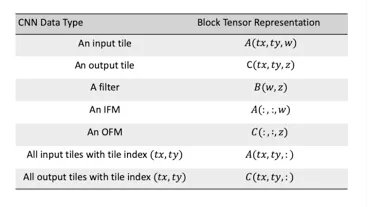 在同一特征图中,输出瓦片图的卷积核相同,但输入瓦片图不同。在输出维度中,输出瓦片图的输入瓦片图相同,但卷积核不同。下表利用张量理论符号更加完整地解释了MMs和CNNs的相同之处。