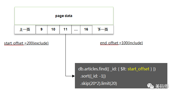 分页数据查询以本页组 start_offset 作为起点,在有限的页码上翻页(skip) 由于一个分组的数据量通常很小(8*20=160),在分组内进行skip产生的代价会非常小,因此性能上可以得到保证。