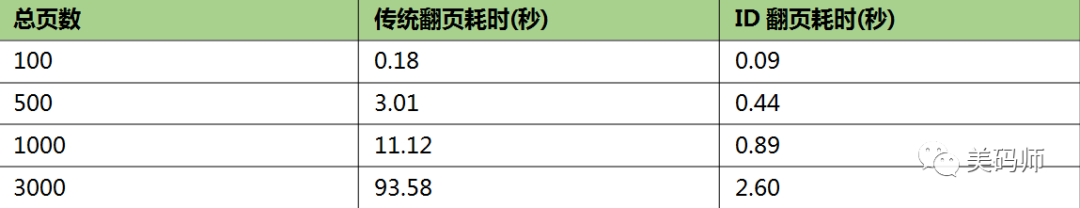 准备10W条数据,以每页20条的参数从前往后翻页,对比总体翻页的时间消耗。