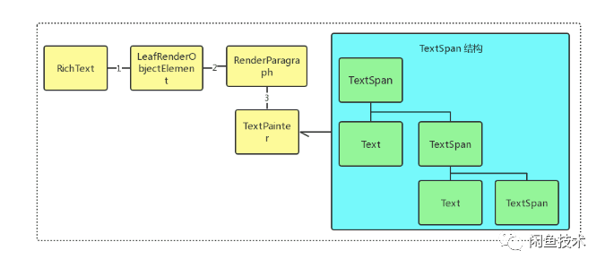 RenderParagraph 会创建TextPainter 负责其就计算宽高和绘制文本到Canvas 的代理类,同时TextPainter 持有TextSpan 文本结构。