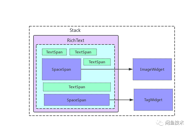 这种方案的优点是任意Widget可通过SpaceSpan和RichText进行组合,无论是图片、自定义标签、甚至是按钮都可以融合进来,同时对RichText本身封装性破坏较小。