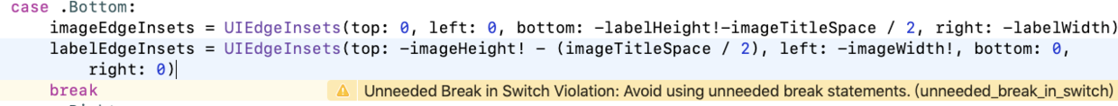 所以,当我们看到 Unneeded Break in Switch Violation: Avoid using unneeded break statements.(unneeded_break_in_switch) 就说明我们添加了不必要的break,我们去掉它就好了。