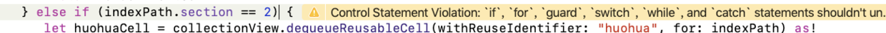 所以,当看到 Control Statement Violation: `if`,`for`,`guard`,`switch`,`while`,and `catch` statements shouldn't unnecessarily wrap their conditionals or arguments in parentheses.(control_statement) 你看看你的条件判断语句是不是写了多余的 () ,去掉它就好了。