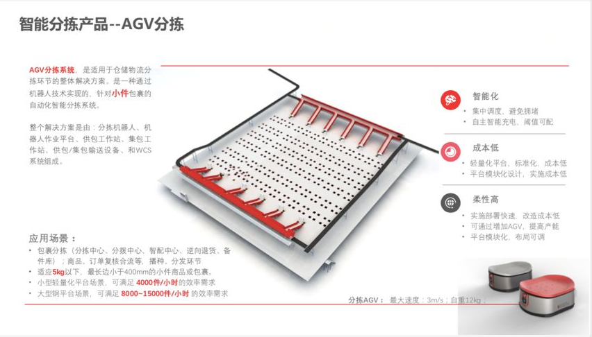 从无人仓的作业流程来看,核心技术主要包括自动存储、混合码垛、视觉检验、自动拣货与分类等。例如,在货物入库、打包等环节,京东无人仓配备了 3 种不同型号的六轴机械臂,应用在入库装箱、拣货、混合码垛、分拣机器人供包 4 个场景下;另外在分拣场景中,京东引进了3 种不同型号的智能搬运机器人执行搬运任务,包括天狼智能存储系统,地狼货到人系统,AGV“小红人”分拣系统等,可以覆盖仓内作业的绝大部分场景。