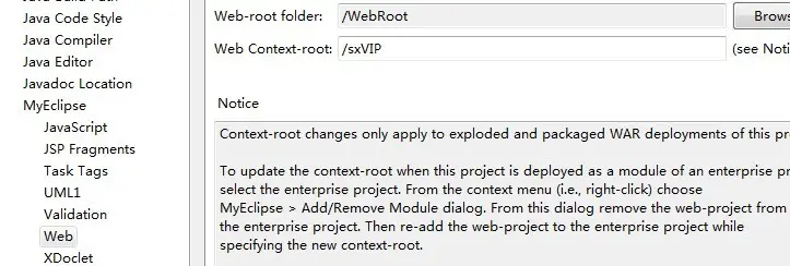 当为myeclipse的项目修改部署的名字时,