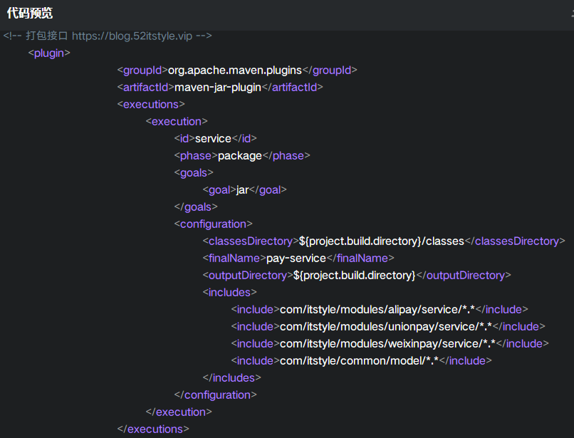打包接口: